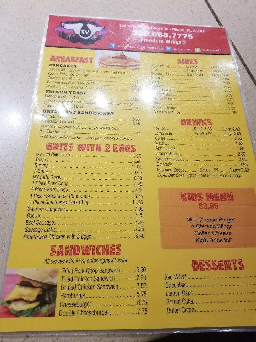 Introducing Freedom Wings, a vibrant dining destination located at 12659 NW 17th Ave, Miami, FL 33167, where flavor takes flight. The menu boasts an irresistible selection centered around their renowned wings, offered in a variety of styles—regular, grilled, and an array of enticing flavors. Choose from 5, 10, 15, or even 20 pieces, perfect for sharing or indulging on your own.